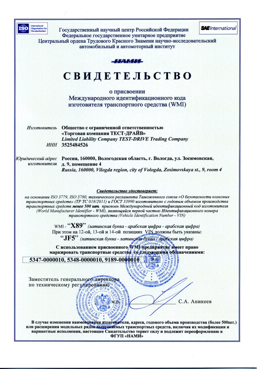 Код wmi производителя получить необходимо на начальном этапе производства, так как он потребуется в дальнейшем для получения другого разрешающего документа – Одобрения типа транспортного средства (ОТТС). Он должен быть получен на каждый вид выпускаемой продукции. Вместе с кодом выдается свидетельство WMI о его получении. Этот документ предоставляет изготовителю законное право маркировать ТС с присвоением 17-значного VIN-номера, что является обязательным условием для производства и импорта автомобилей.