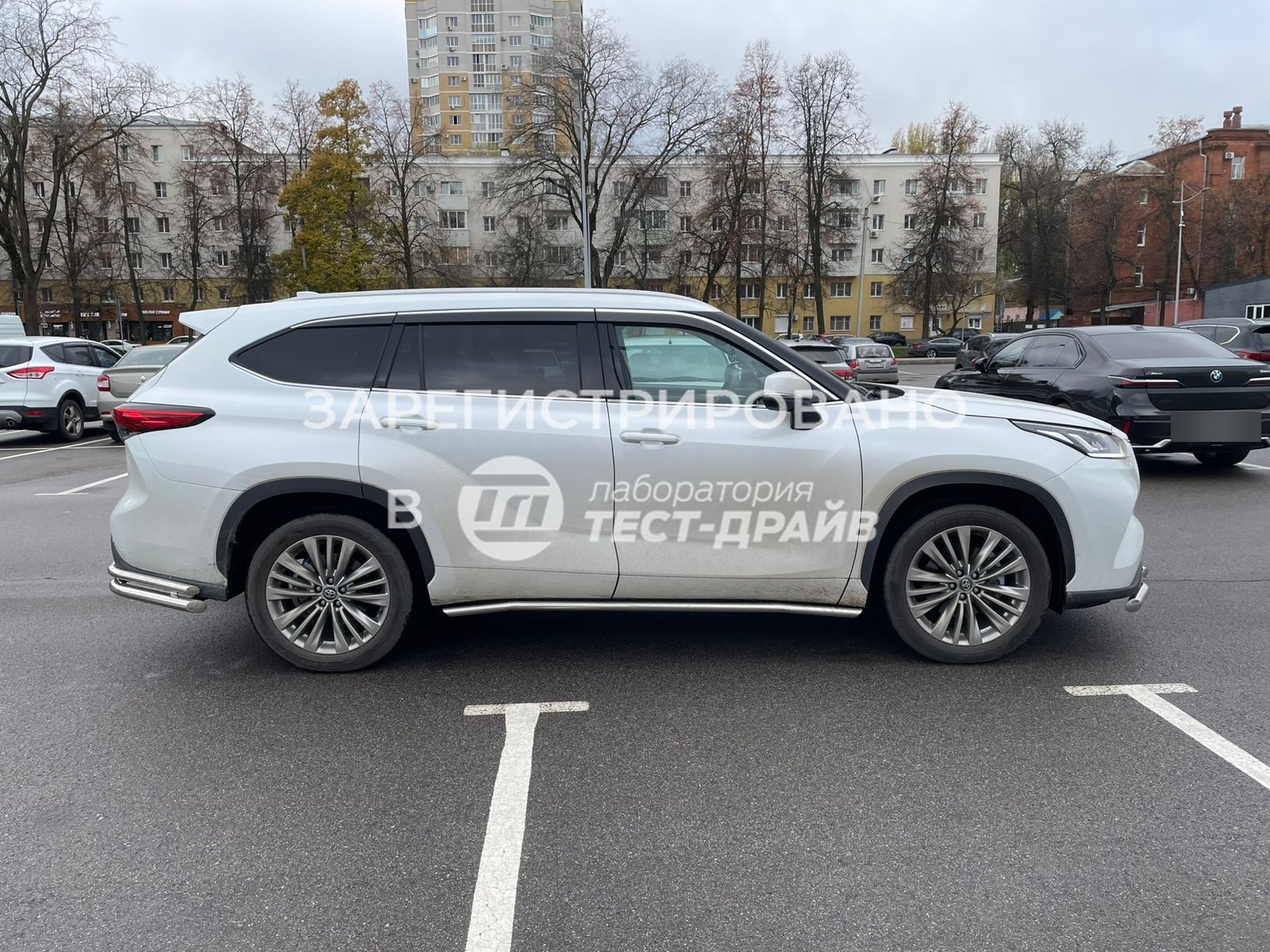 Установка декоративной защиты и порогов на Toyota Highlander в Сочи